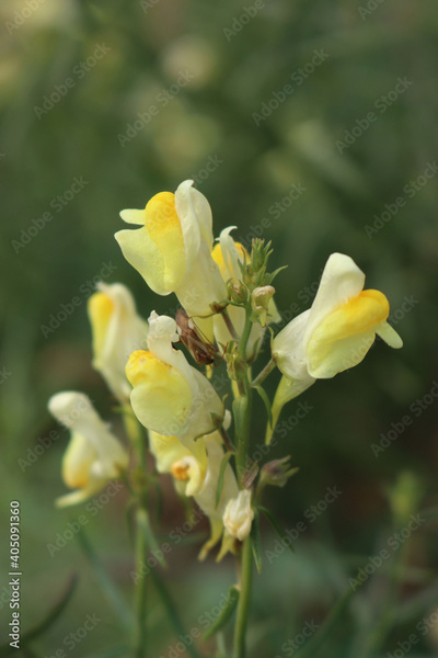 Linaria vulgaris yellow flowers. Yellow wildflower of Linaria also called yellow toadflax in bloom on summer