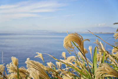 江ノ島・稚児ヶ淵付近の風景【ハチジョウススキ・海・富士山】