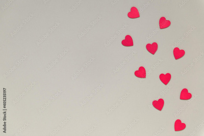 red hearts border grey background, Valentine's day flat lay