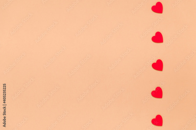 red hearts border beige background, Valentine's day flat lay