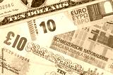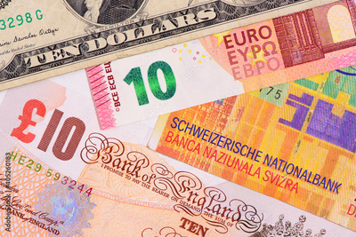 Verschiedene Währungen von Europa, England, USA und Schweiz