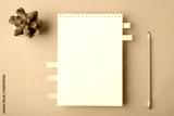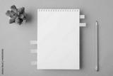 Above overhead close up view photo of clear notebook with place for design isolated vivid color backdrop table