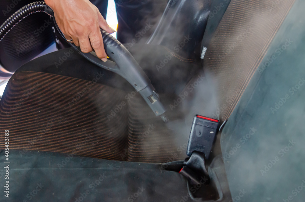 Steam the car seats. Use high heat steam to kill germs to clean.