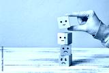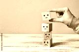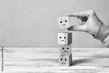 Wooden cubes with drawings of different emotions: sadness, anger, calmness, joy. Choosing joy in life
