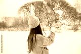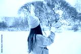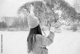Winter wonderland day in the park. Happy beautiful woman having fun and enjoying life with snow. Female wearing pink winter holiday clothes. Winter emotion in the city. woman from behind