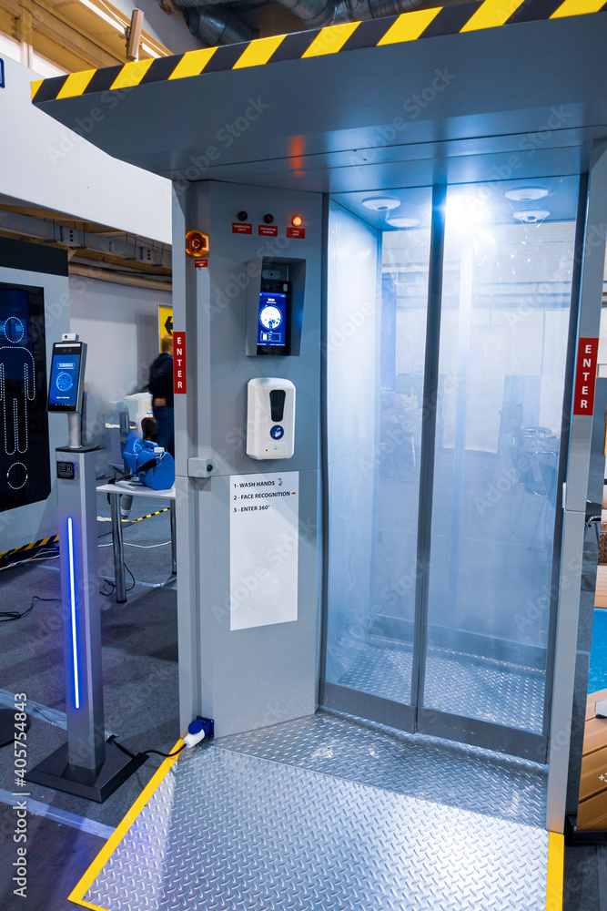 Checkpoint with body temperature sensor and sterilization against viruses and bacteria