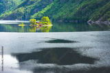 Breathtaking view of small island with red house in Lovrafjorden fjord, Norway. Landscape photography