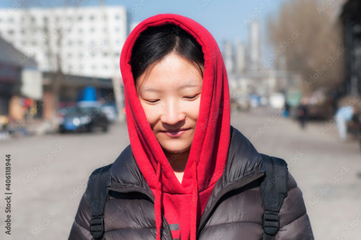 chinese woman wearing a red hoodie china
