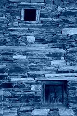 Stone facade of old house carved by stonemasons, and window