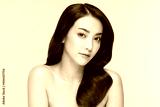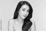 Side view of Beautiful Asian woman smile with clean and fresh skin Happiness and cheerful with positive emotional,isolated on Beige background,Beauty and Cosmetics Concept