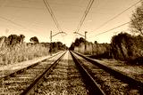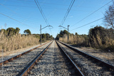 empty railway with electric cables above