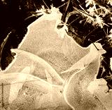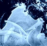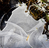 Thin ice forms designs of cuves and triangles in nature in winter