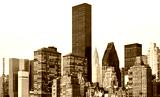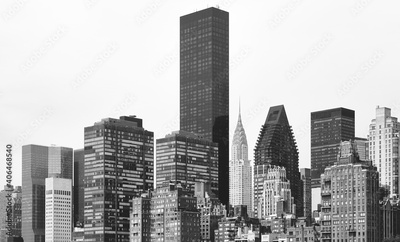Black and white picture of New York City east side skyline, USA.