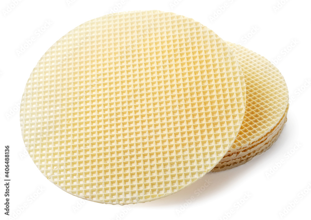 Round sheets for waffle cake, without filling on a white background. Isolated