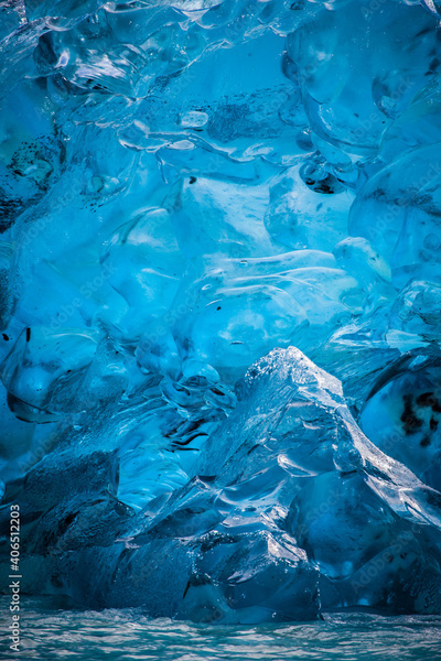 Deep blue very old floating iceberg