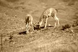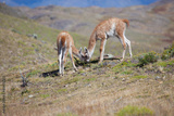 Graceful and petite guanakos, a type of llama, graze ibn Chile.