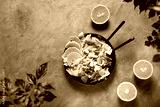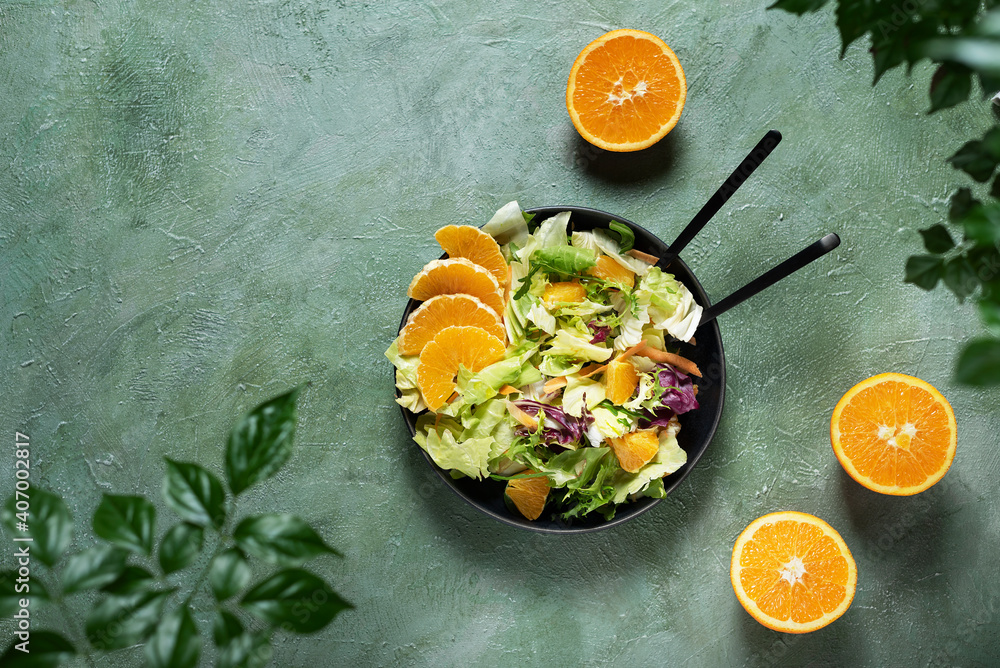 Concept of vegan food with green salad