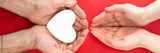 male and female hands with a white heart, health care, love and family insurance concept, world heart day, world health day, foster family, international family day