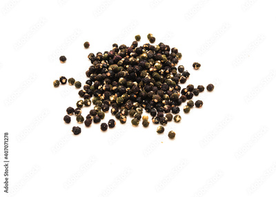Top view pile of Basella alba or malabar spinach seeds isolated on white background