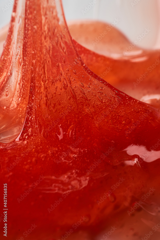 The texture of the red transparent cosmetic gel. Abstract background