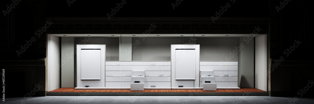 Leeres Schaufenster mit Beleuchtung im Einzelhandel