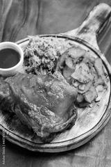 SCHWEINSHAXE traditional german pork knuckle with sauerkraut and potatoes meal