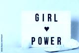 Luminous "girl power" poster with menstrual cup and reusable pad. Feminist themed letters with pink background. Feminism concept.Message concept. Zero waste concept