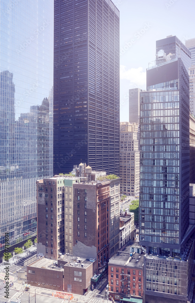 Manhattan cityscape on a sunny day, color toning applied, New York, USA.