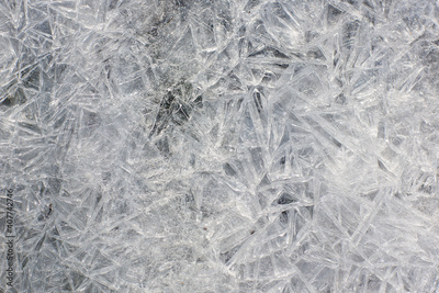 Close-up of a frozen water surface in winter. Beautiful frozen ice texture.