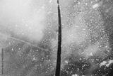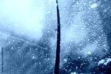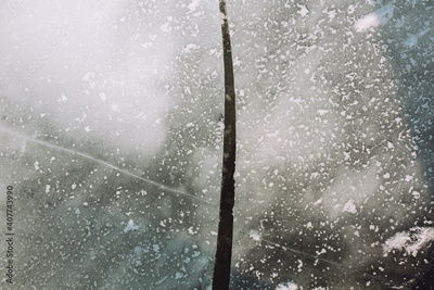 Winter river ice with crack in the surface exposing water. The ice is grey and white in colour.