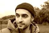 Handsome man smiles, guy looks thoughtfully into the distance, portrait, close-up