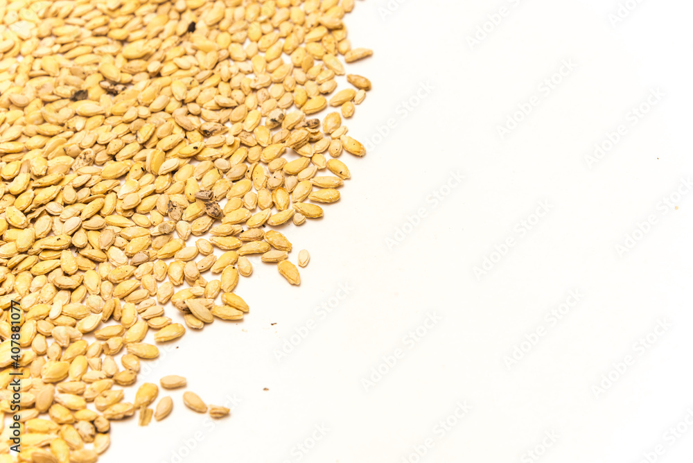 Winter melon wax gourd seeds spreading with copy space on isolated white background