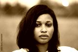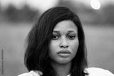 black and white portrait of a beautiful young african woman, close up on her face which has freckles