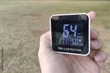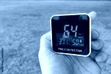 bad outdoor air quality. handheld pm2.5 dust sensor indicated harmful level of tiny dust particulate matter in the air. bad air quality even in park with lots of big trees.