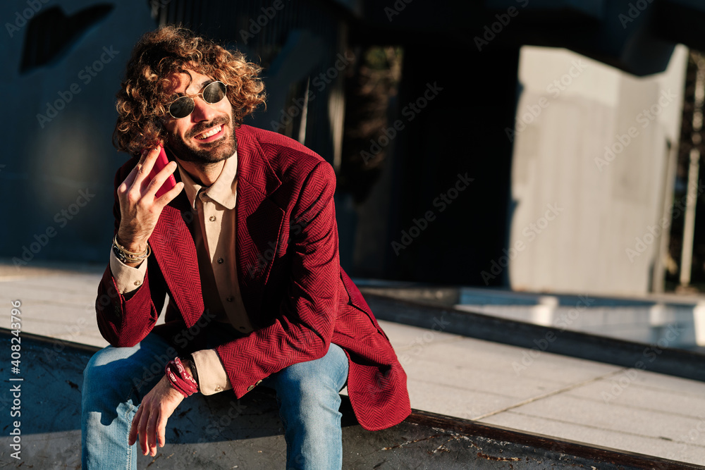 Man talking on the phone outdoors.