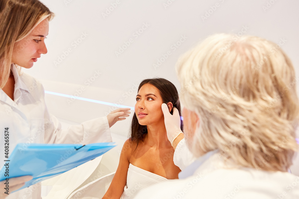 Hautarzt Team bei Untersuchung einer Patientin