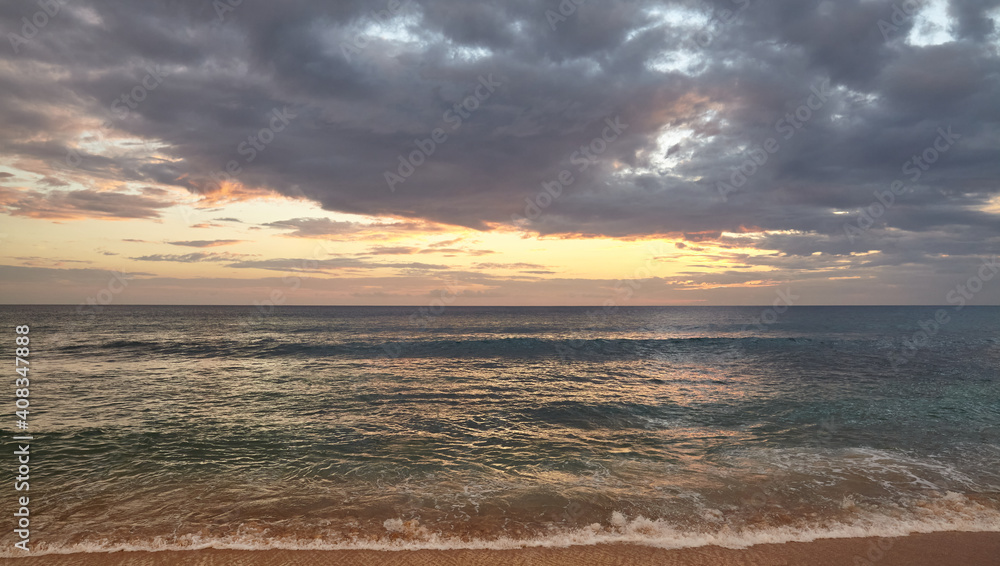 Seascape with dramatic cloudscape at sunset.