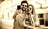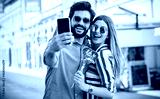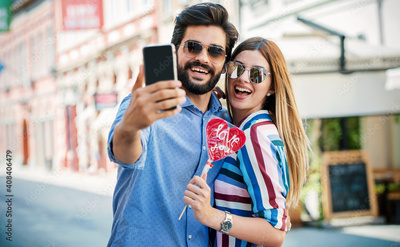 Happy couple making a selfie with mobile phone. Dating, love, relationships, lifestyle concept