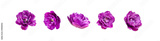 Various buds of purple tulip isolated on white background. Creative floral composition with tulips. Spring blossom concept, nature layout, beautiful flowers for your design
