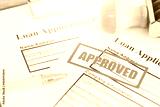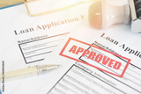 Loan application form with Rubber stamping that says Loan Approved, Financial loan money contract agreement company credit or person loan approval