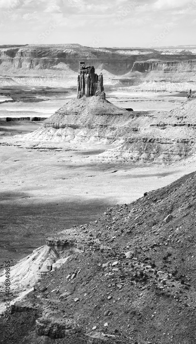 Black and white picture of Canyonlands National Park, Utah, USA.