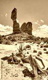 Balanced Rock in Arches National Park, color toning applied, Utah, USA.