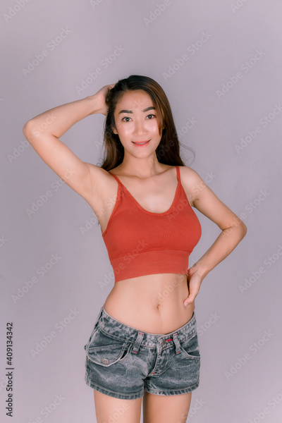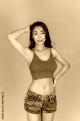 Sexy asian woman in good shape, white skin, taken in a studio