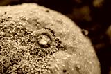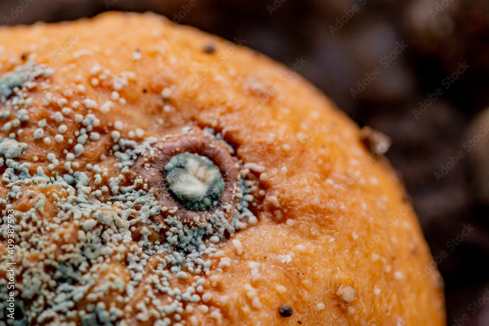 The moldy mandarin orange in the garden.