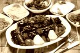 Aubergine kebab served with onion and grilled tomatoes