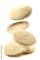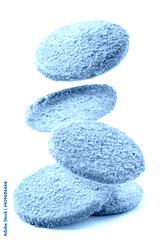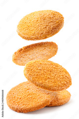 Semi-finished cutlets fall on a pile on a white background. Isolated