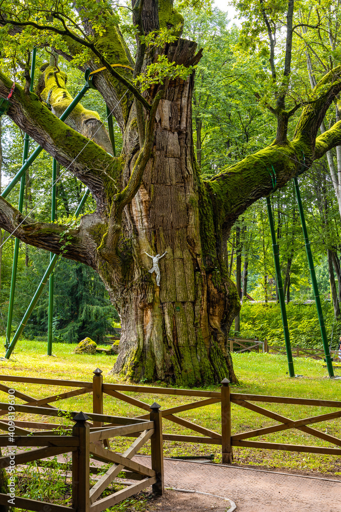 Bartek Oak nature monument, one of oldest oak tree in Poland, aged over 800 years in Swietokrzyskie Mountains village Zagnansk near Kielce in Poland