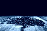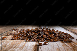 Coffee beans background on wooden table