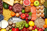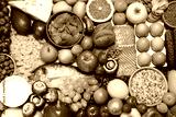Different products as background, top view. Healthy food and balanced diet