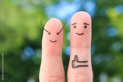 Fingers art of Happy couple. Man likes women's long eyelashes .
